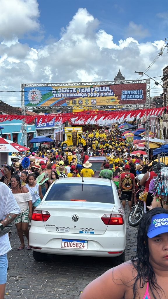Também foram vistos vários veículos estacionados nos corredores e folia. Importante observar que não eram de moradores que costumeiramente retiram os seus dias antes da festa e levam para fora do Sítio Histórico, estes veículos estavam sendo utilizados por comerciantes e visitantes que sem o menor pudor circulavam e estacionavam de maneira livre. Alguns estavam adesivados, demonstrando que a burocracia e a tecnologia computacional também precisam vencer a tecnologia social de quem quer burlar. Também virou uma cena comum, principalmente à noite, motos de aplicativos circulando livremente pela área que deveria ser restrita.
